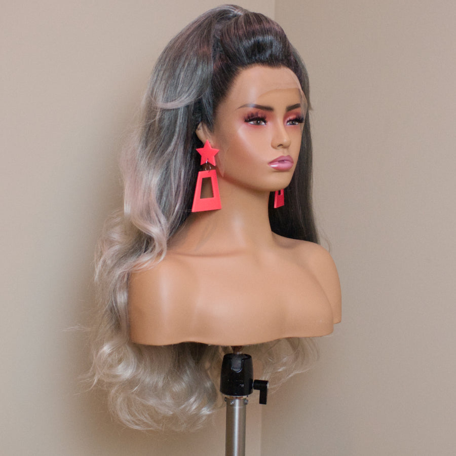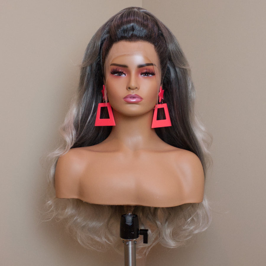 Base Wig: 200% density. HD value lace. Average cap size (22”-24”), our stylists typically use 23" styling heads. Please use the adjustable straps to fit.
